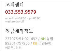 | 주소 : 강원 태백시 절골2길 24(황지동) 통신판매업 신고 : 제2012-4220072-30-2-00022호 | 연락처 : 010-2391-7579 | FAX : 033-553-9579 | 개인정보보호 책임자 : 허진 | 대표자 : 허진 contact : jok6469@naver.com for more information. hosting by ㈜ 가 비 아 씨 엔 에 스 |